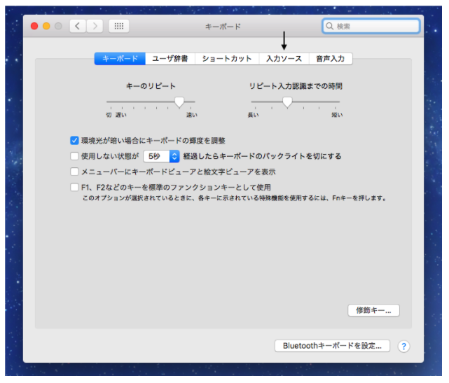 キーボードアイコンをクリックすると以下の画面が現れるので、入力ソースってボタンをクリックしてみてください。