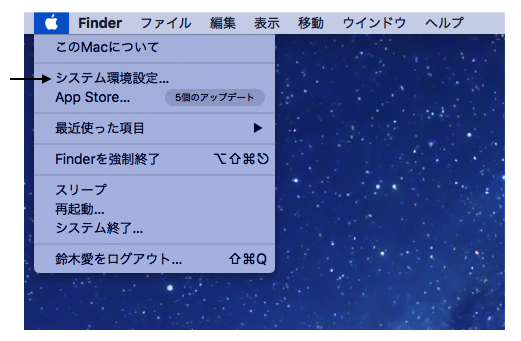 まずは、リンゴマークをクリックして、システム環境設定をクリック!!