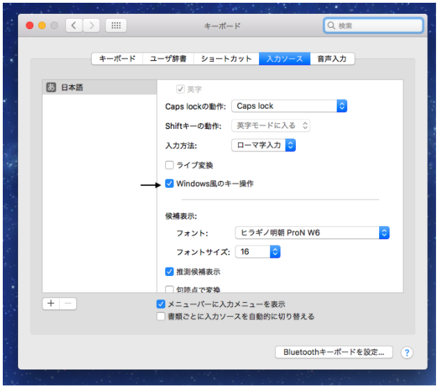 すると、以下の画面が現れます。その画面にあるWindows風の操作キーのチェック欄をチェックしてください。