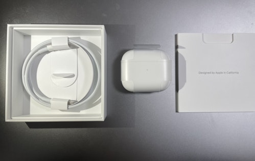 箱の内容物は左から、充電ケーブル(Lightning to type C)、AirPods本体、説明書と割とシンプルです。